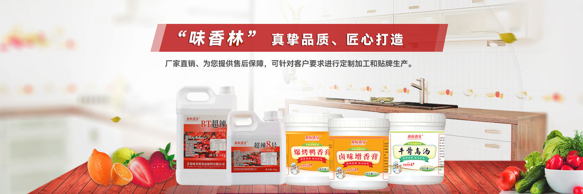 青島味香林復合調(diào)味料分為膏狀系列、粉狀系列、油狀系列三大分類,總共一百多種產(chǎn)品,可以根據(jù)客戶需求進行定制口味;